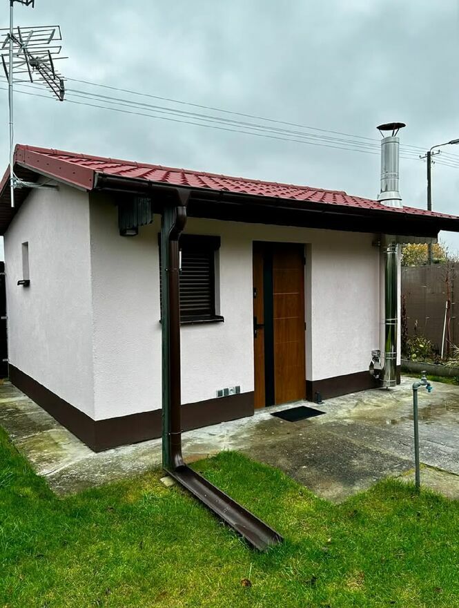 - Prąd całoroczny - Z nową instalacją elektryczną od samej skrzynki z bezpiecznikami na alejce aż po cały domek jak i na zewnątrz.