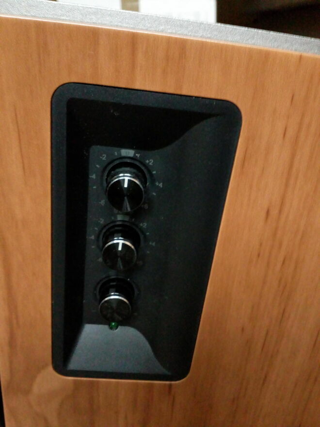 Na bocznej ścianie głośnika umieszczono 3 pokrętła, które pozwalają na precyzyjną regulację basów, tonów wysokich i poziomu głośności. Do zestawu dołączono też pilot bezprzewodowy, który umożliwia wygodną regulację głośności oraz funkcję wyciszenia. Z kolei 2 wejścia RCA umożliwiają podłączenie zestawu do różnych źródeł dźwięku.